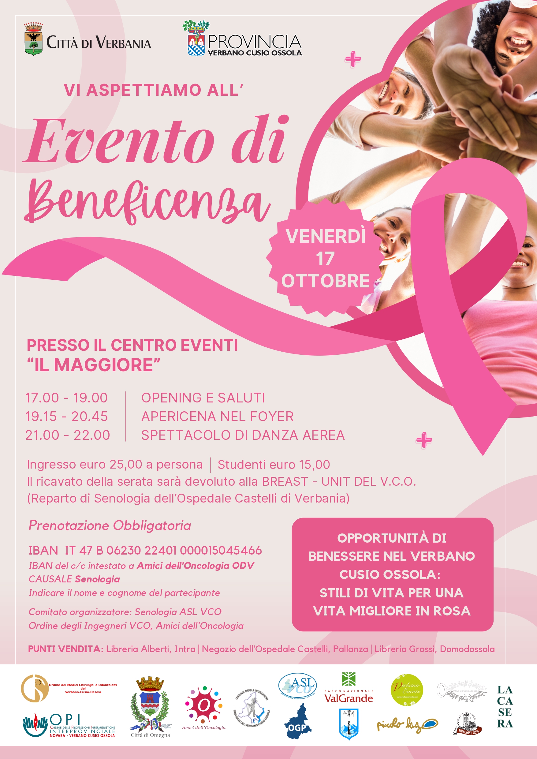 📌 Il ricavato dell’evento sarà devoluto alla BREAST-UNIT del V.C.O. (Reparto di Senologia dell’Ospedale Castelli di Verbania), per sostenere la cura e il supporto alle donne del nostro territorio.